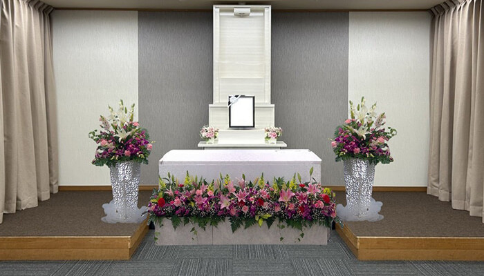 - 式場は2階ホール(直葬のため宗教者を招いてのお通夜や葬儀・告別式は執り行えません/飲食・ご宿泊はできません)