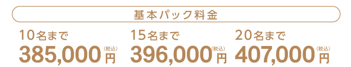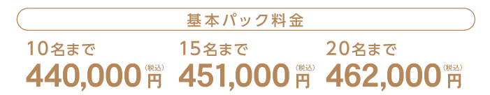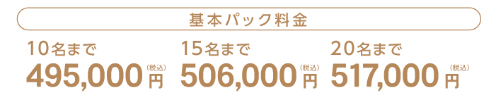 - ~10名まで/~15名まで/~20名までで基本料金が変わります。