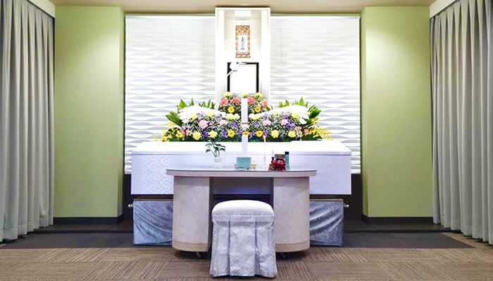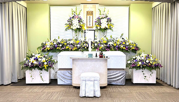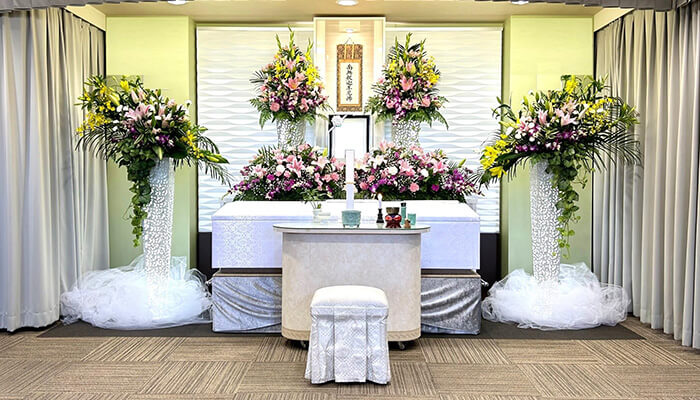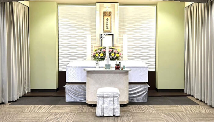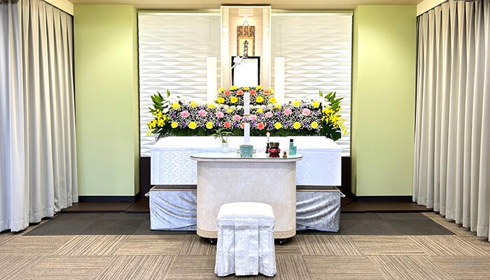 故人様の祭壇とご家族様の控室が同フロアーとなっていますので、ゆっくりとお過ごしいただけます。